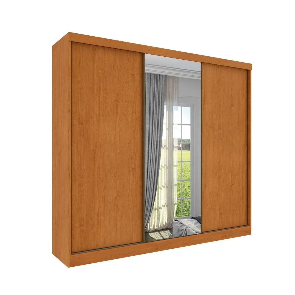 Guarda Roupa 3 Portas Monte Carlo Com Espelho Tcil Móveis – Cinamomo/Cinamomo