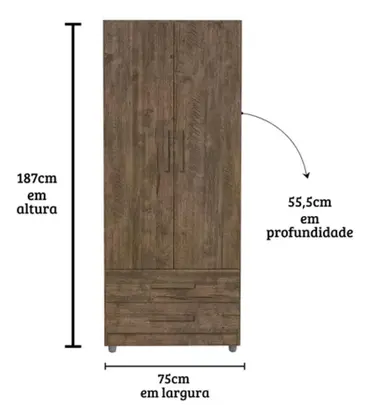 | Dimensões do Produto | Altura: 187 cm Largura: 75 cm Profundidade: 55,5 cm |