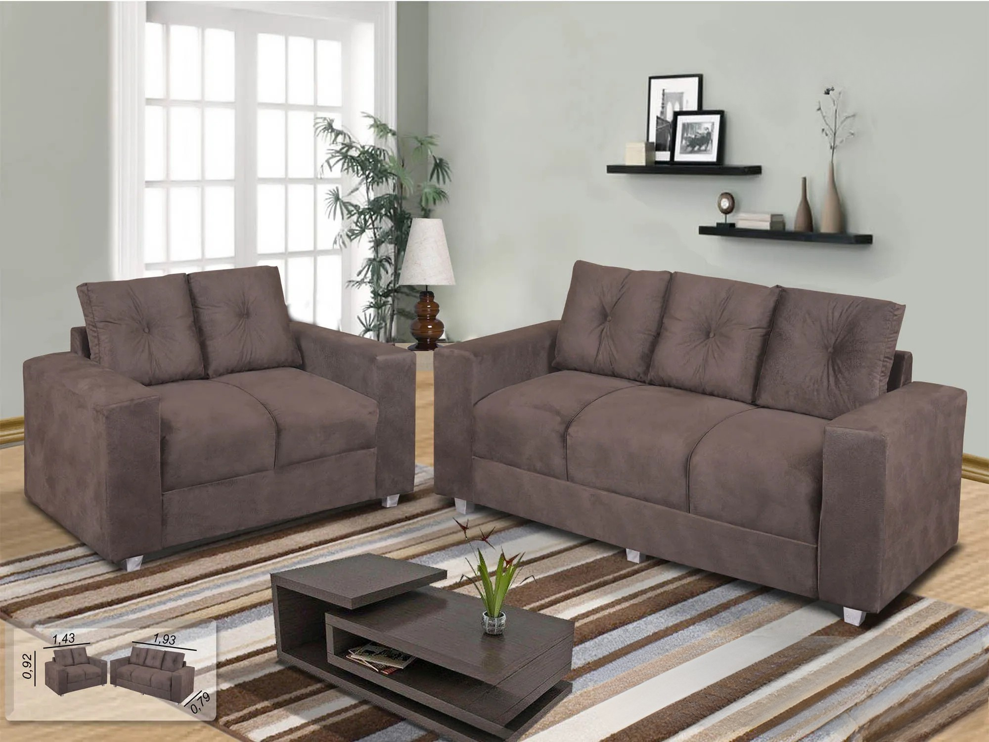 Sofá com 2 e 3 lugares.